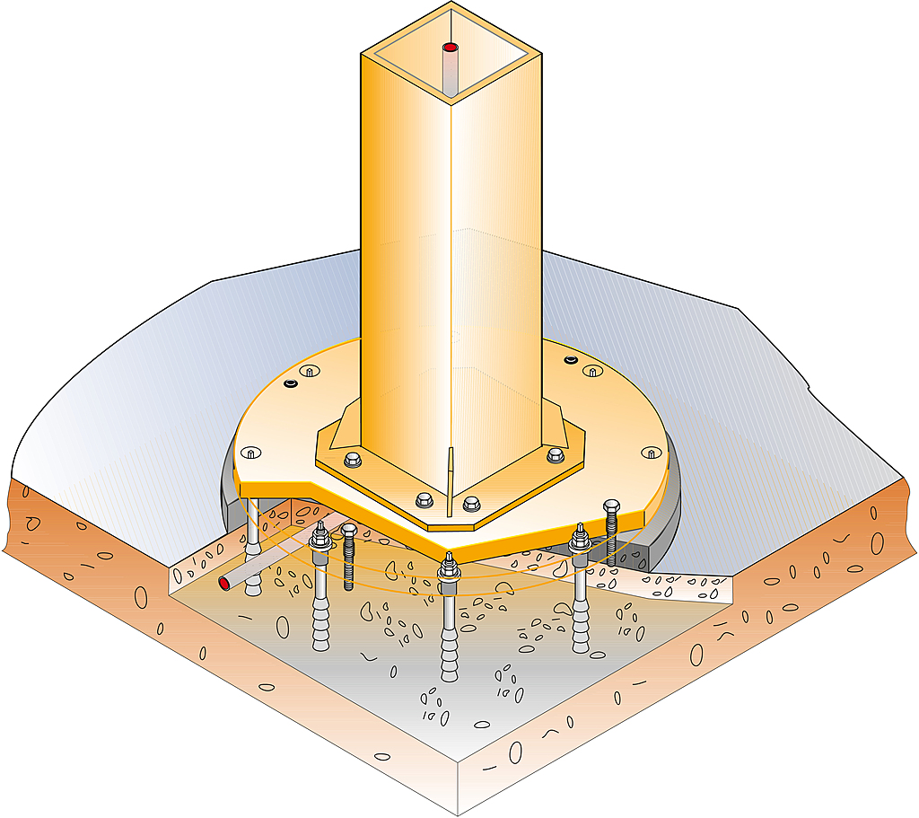 - Fundamentbefestigung mittels Ankern und Schablone auf Anfrage