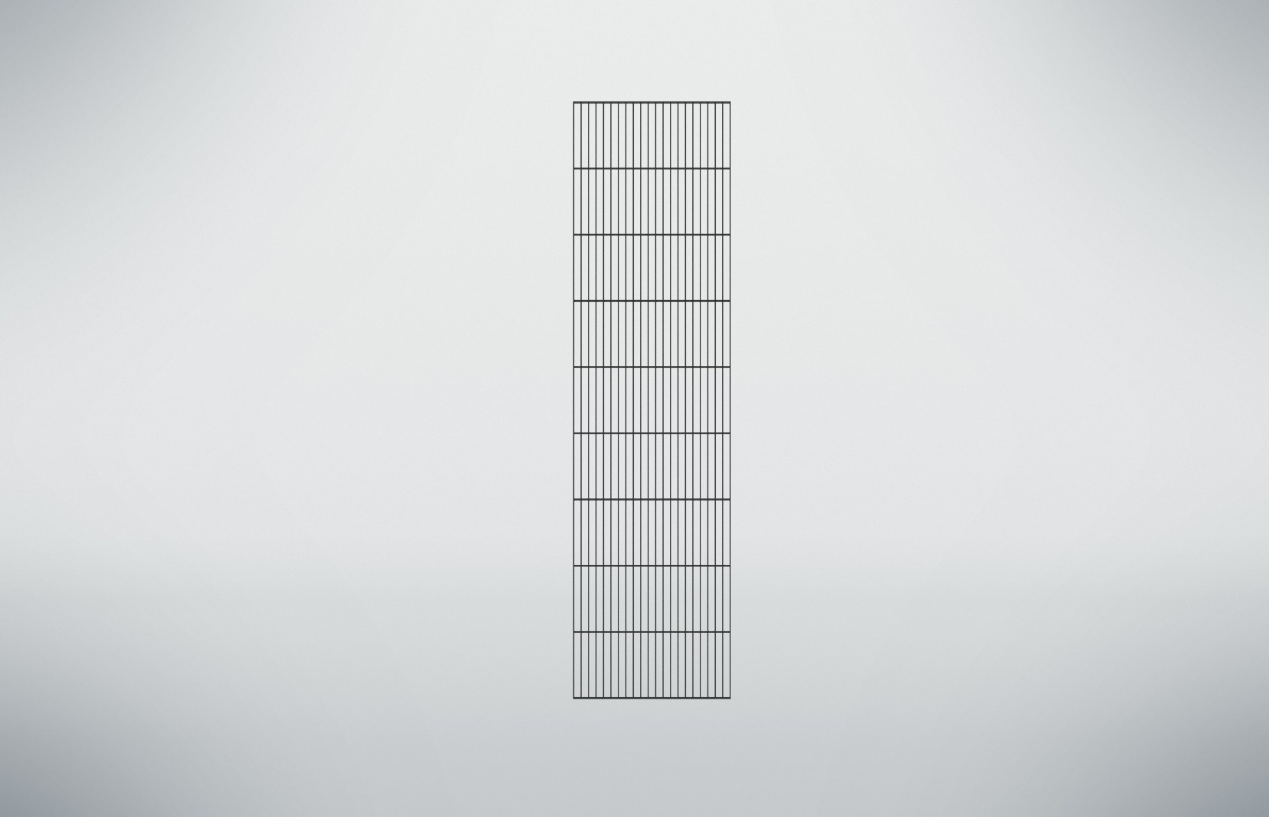 - Pulverbeschichtet RAL 1018 zinkgelb (Pfosten) und RAL 9005 tiefschwarz (Gitter),