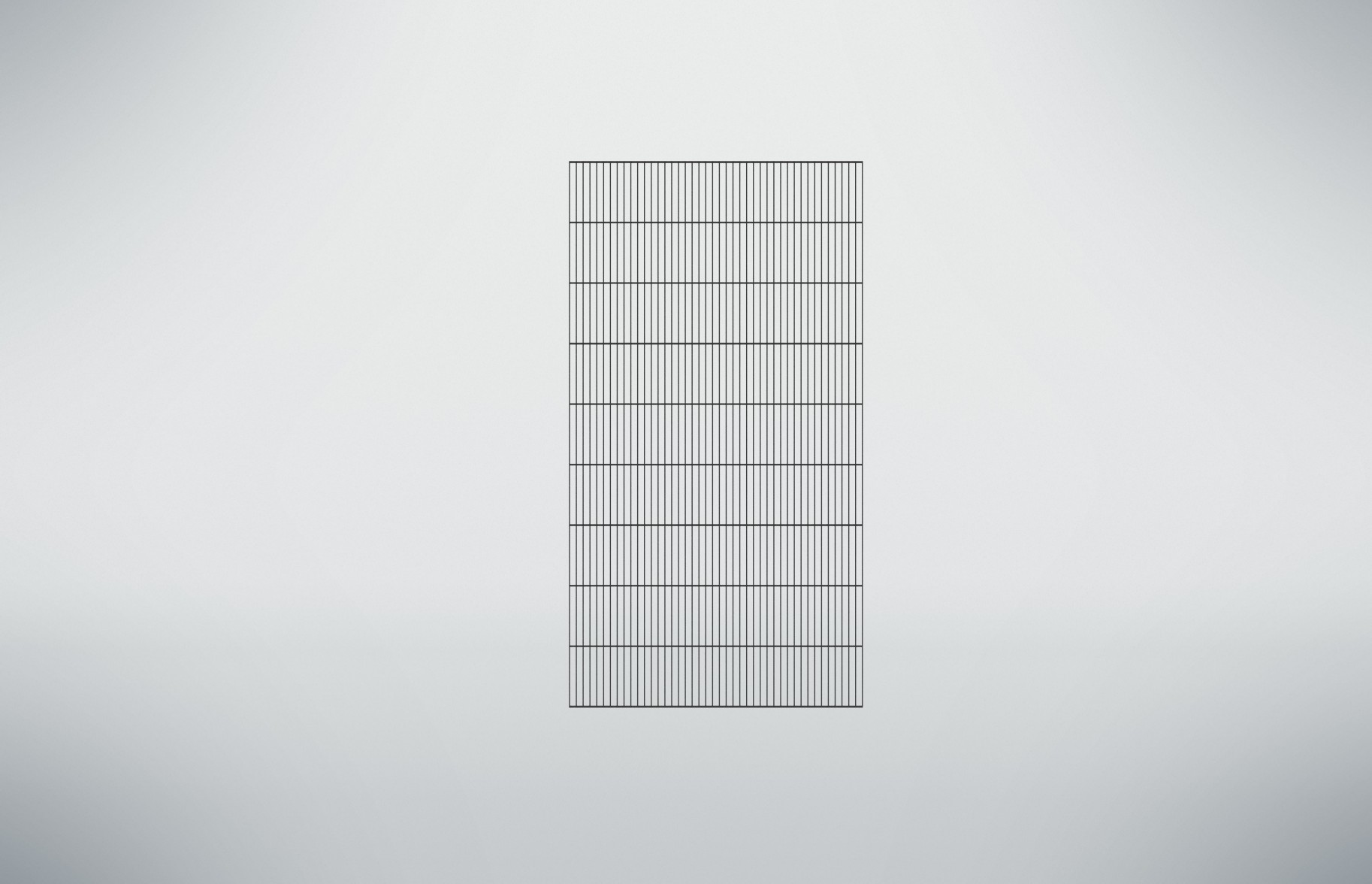 - Pulverbeschichtet RAL 1018 zinkgelb (Pfosten) und RAL 9005 tiefschwarz (Gitter),