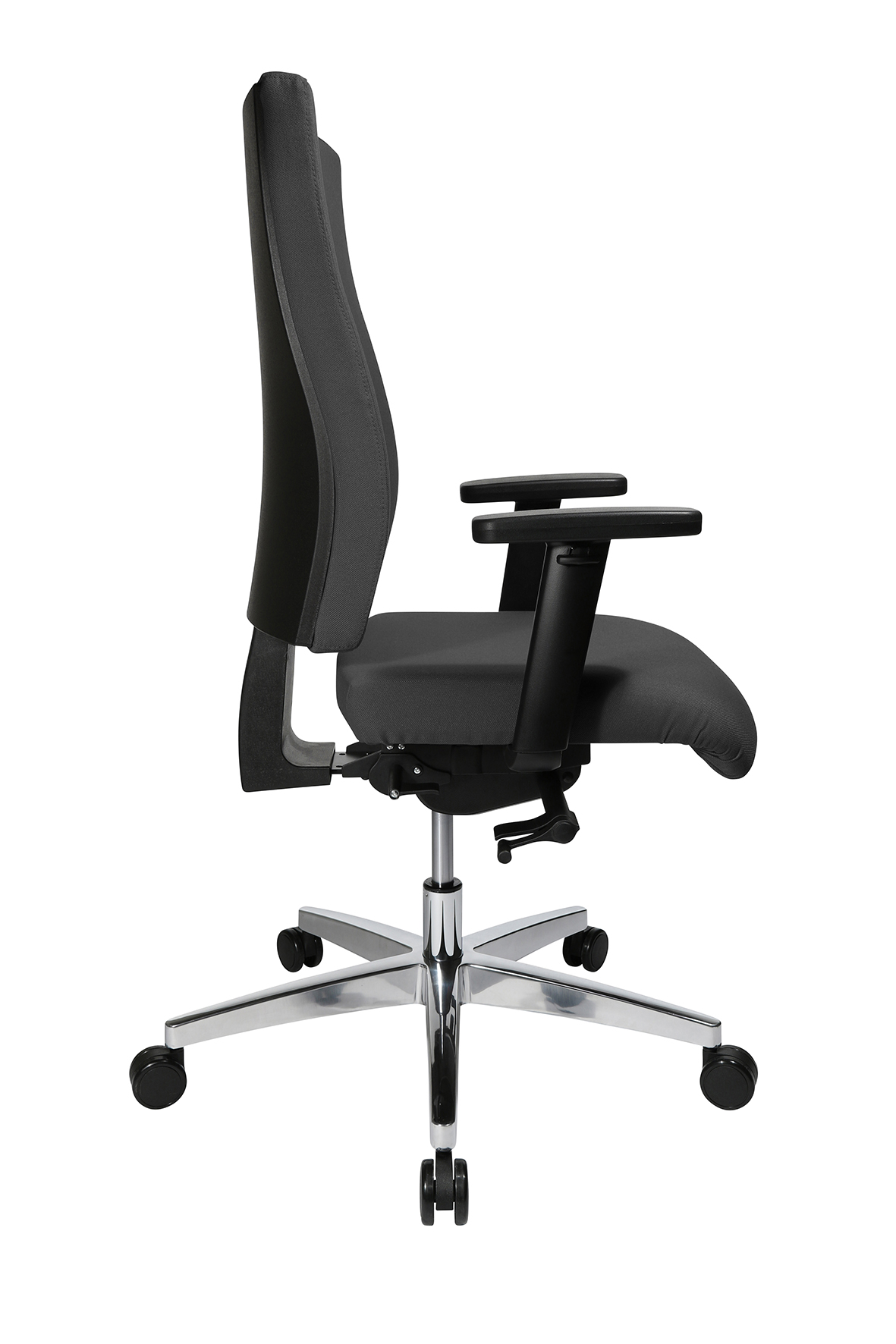 - Rückenlehne „high back“ mit ergonomischer Ausformung im Lendenwirbelbereich, Lehnenrückseite mit Kunststoff-Abdeckung schwarz