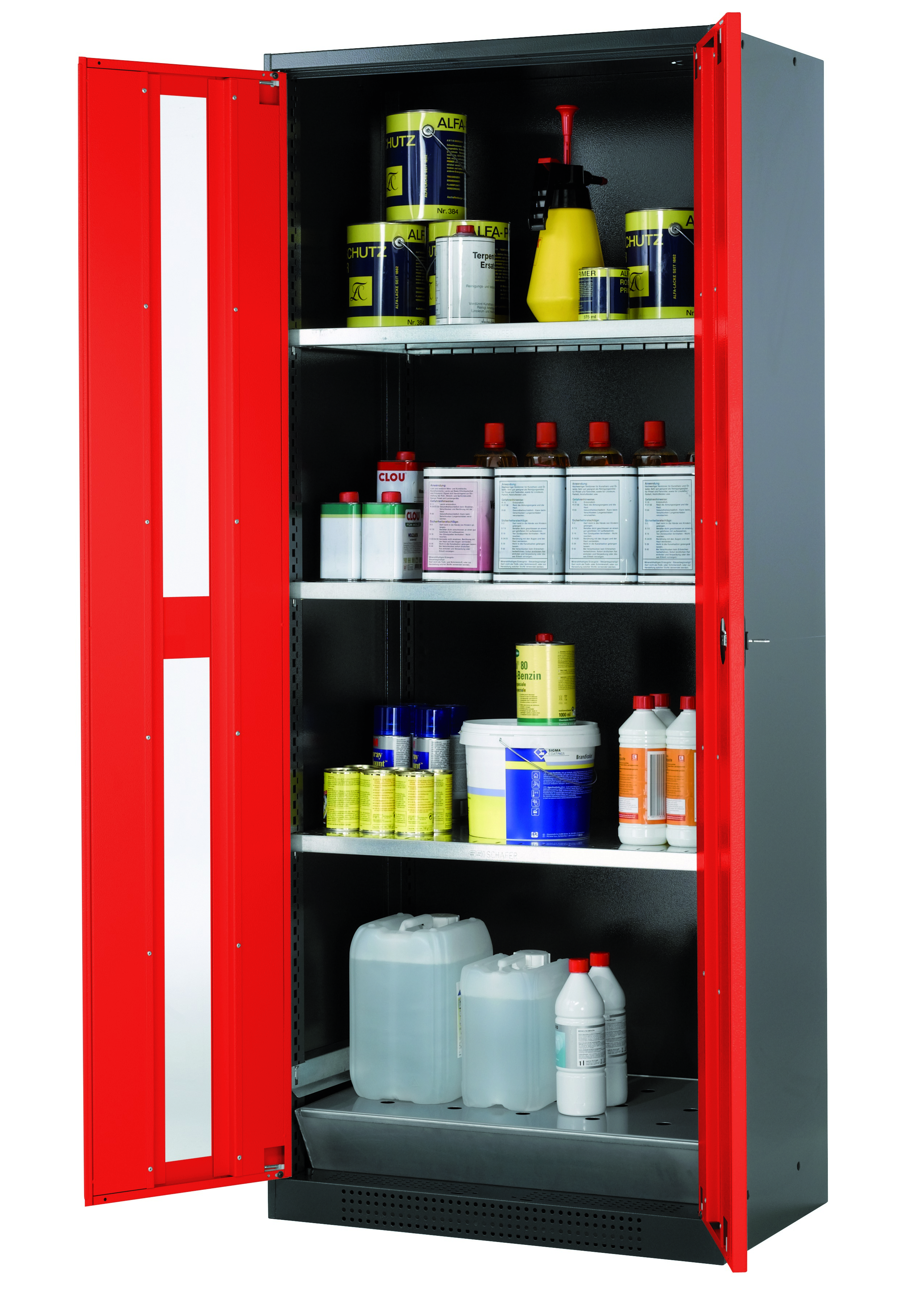 • Chemikalienschrank mit Glasausschnitt: anthrazit / verkehrsrot