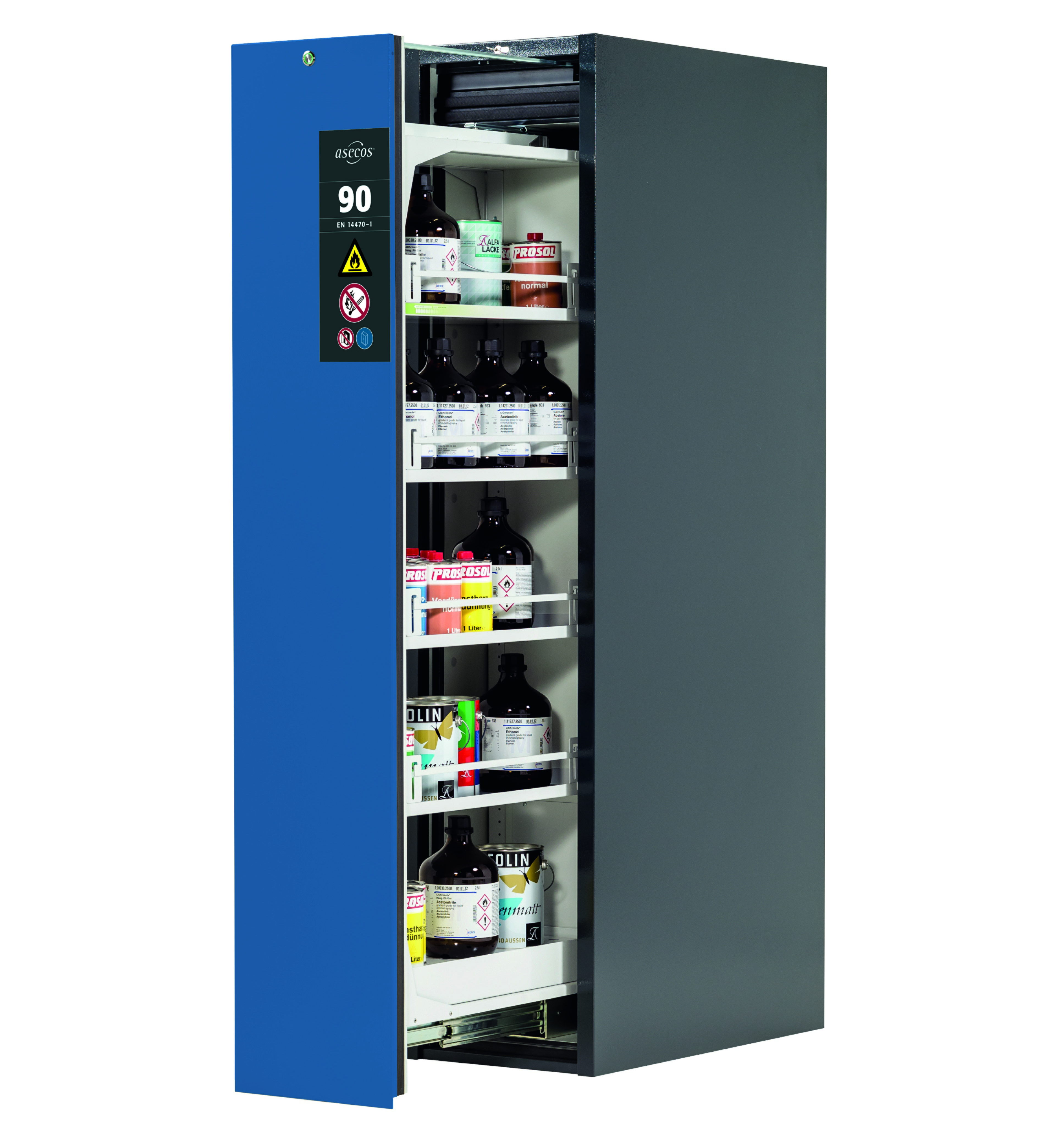 - Sichere und vorschriftsmäßige Lagerung von Gefahrstoffen in Arbeitsräumen gem. DIN EN 14470-1 und TRGS 510 (Anhang 1)