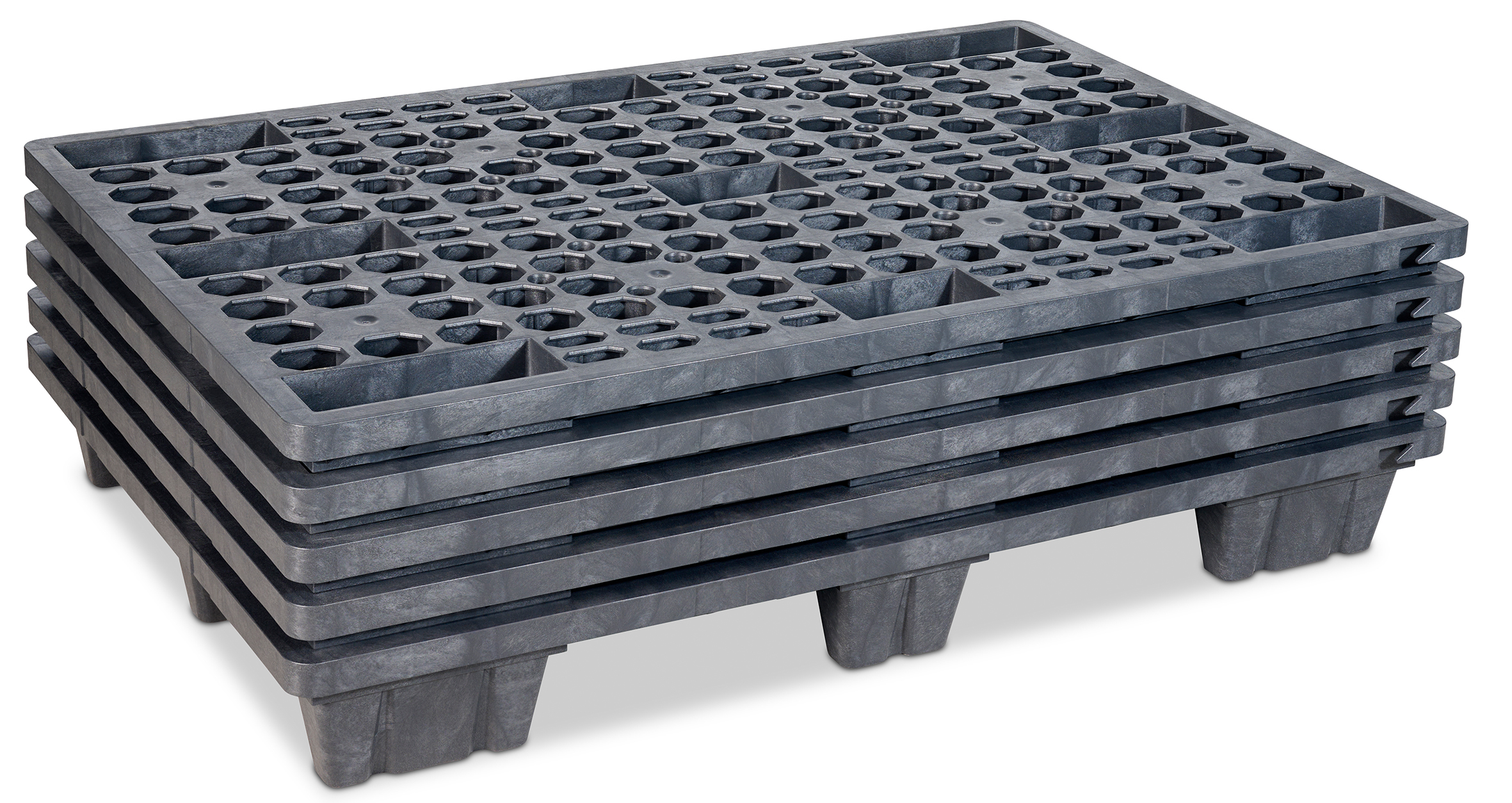 - deutlich robuster als klassische Leicht-/Einwegpaletten, daher trotz des geringen Eigengewichts für den Mehrwegeinsatz hervorragend geeignet