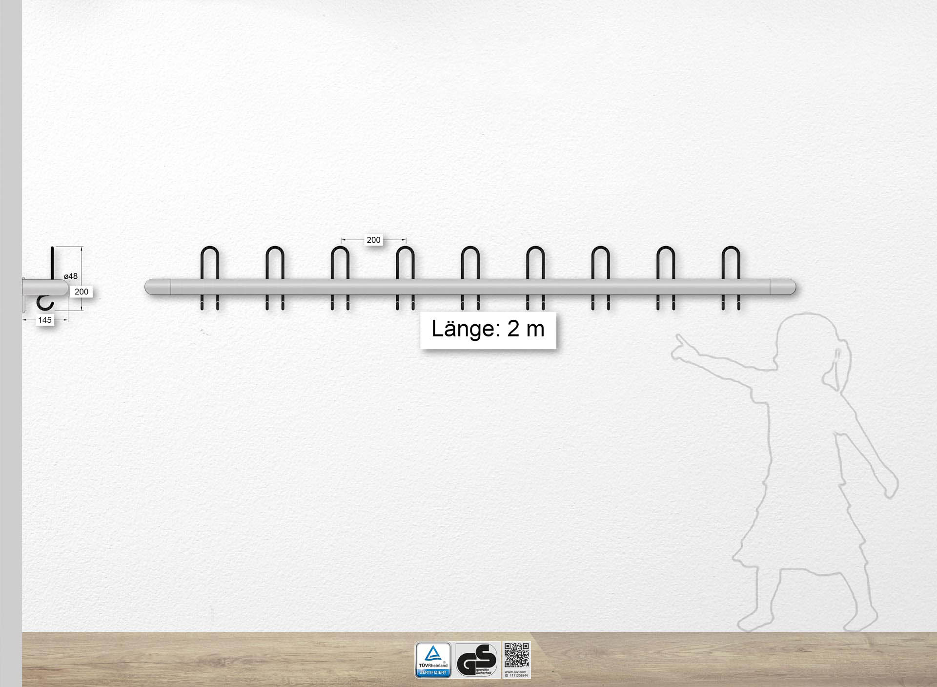 Länge 2000 mm mit 10 Dreifachhaken