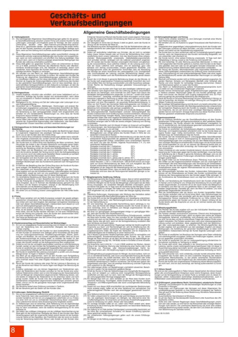 § 1 Geltungsbereich Erfolgt der Versand auf Wunsch des Kunden durch unsere eigenen Fahrzeuge, § 8 Zahlungsbedingungen und Verzug