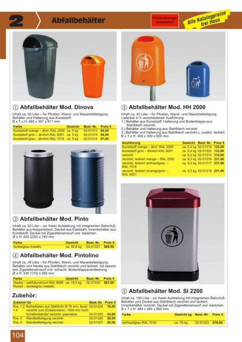 $ Abfallbehälter Mod. Dinova % Abfallbehälter Mod. HH 2000
