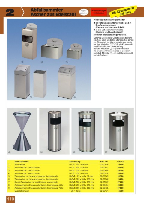 (3) Kombi-Ascher, 2-fach Einwurf H x Ø: 700 x 320 mm 02-00428 352,00