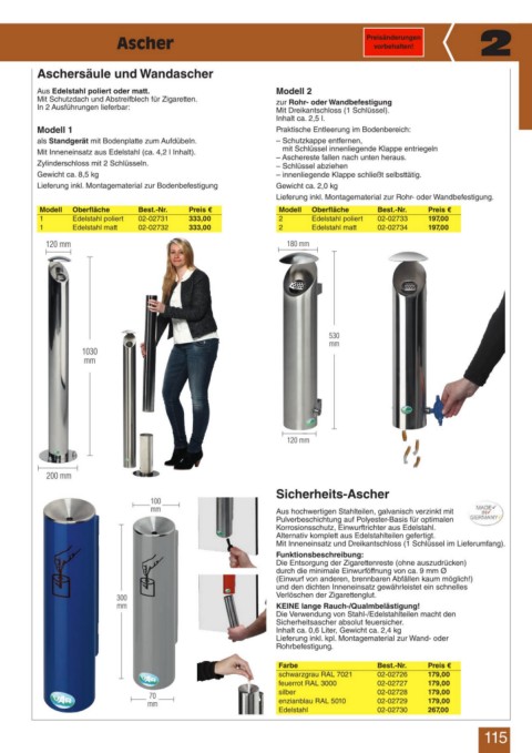 1 Edelstahl poliert 02-02731 333,00 2 Edelstahl poliert 02-02733 197,00