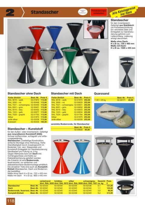 Standascher ohne Dach Standascher mit Dach Quarzsand