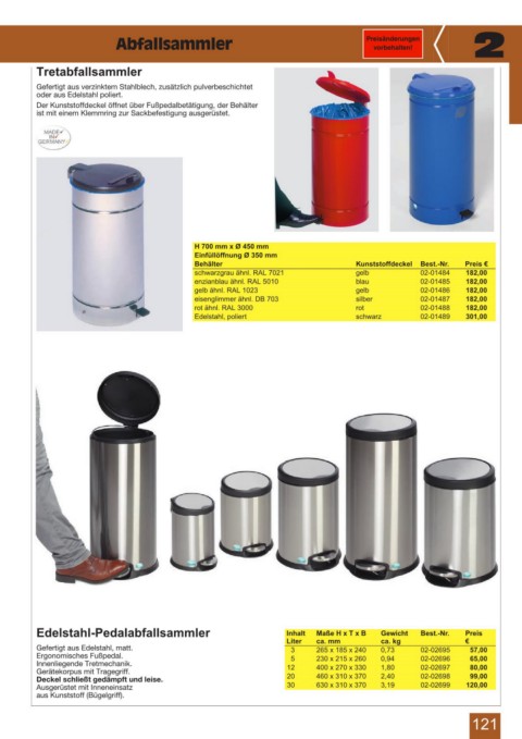 Edelstahl-Pedalabfallsammler Inhalt Maße H x T x B Gewicht Best.-Nr. Preis