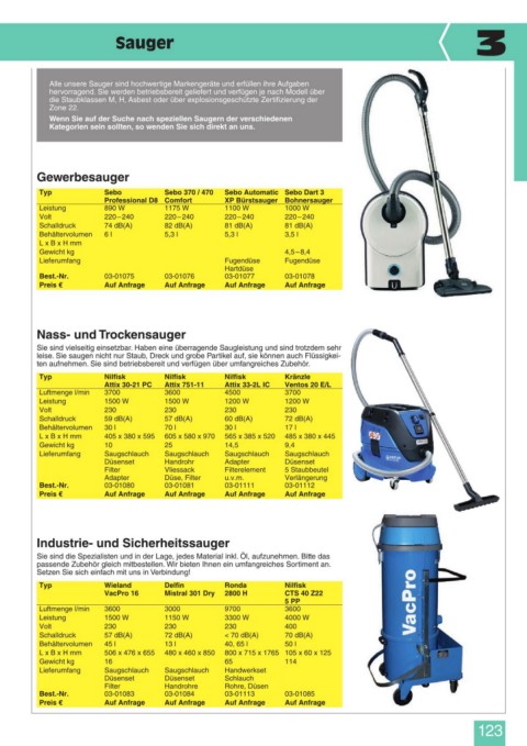 die Staubklassen M, H, Asbest oder über explosionsgeschützte Zertifizierung der