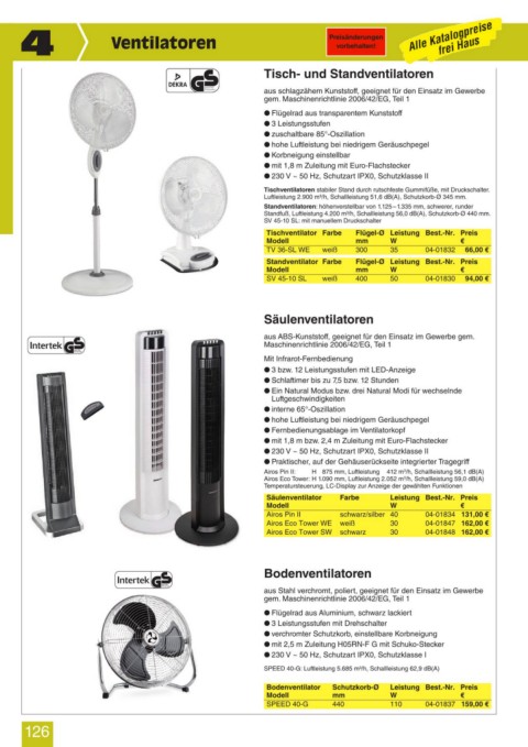 Standventilatoren: höhenverstellbar von 1.125 – 1.335 mm, schwerer, runder