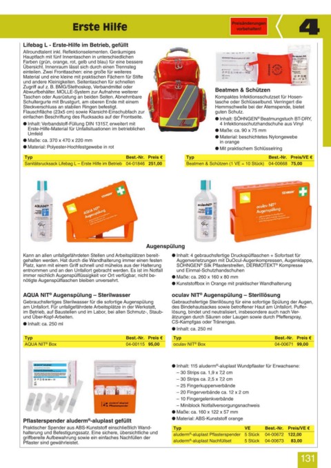 Sanitätsrucksack Lifebag L – Erste Hilfe im Betrieb 04-01846 251,00 Beatmen & Schützen (1 VE = 10 Stück) 04-00668 75,00