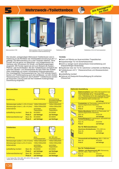 Mehrzweckbox 2700 Mehrzweckbox 2706 mit 2 Zusatzfenstern Toilettenbox 2701 Toilettenbox 2704 mit Frischwassertank