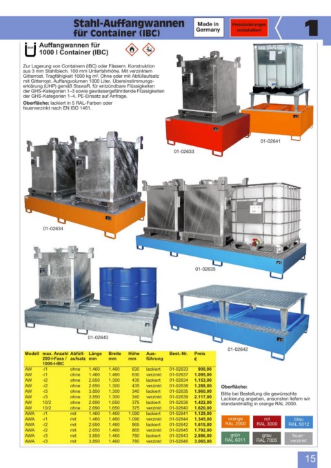 AWA -/2 mit 2.650 1.460 865 lackiert 01-02642 1.615,00 RAL 2000 RAL 3000 RAL 5012