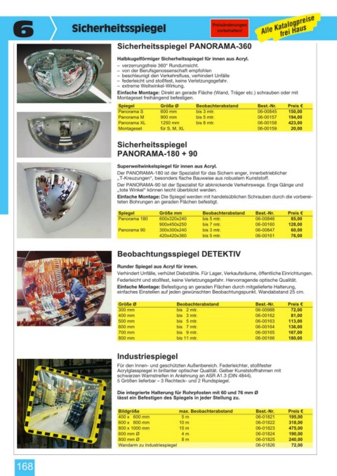 Spiegel        Größe mm       Beobachterabstand  Best.-Nr.  Preis 7