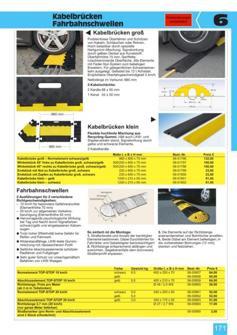 Kabelbrücke groß – Normelement schwarz/gelb         960 x 600 x 75 mm          06-01796       132,00