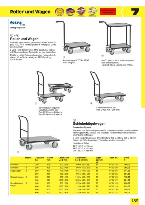 Modell Tragkraft Rad-Ø Ladefläche Außenmaße Eigen- Best.-Nr. Preis