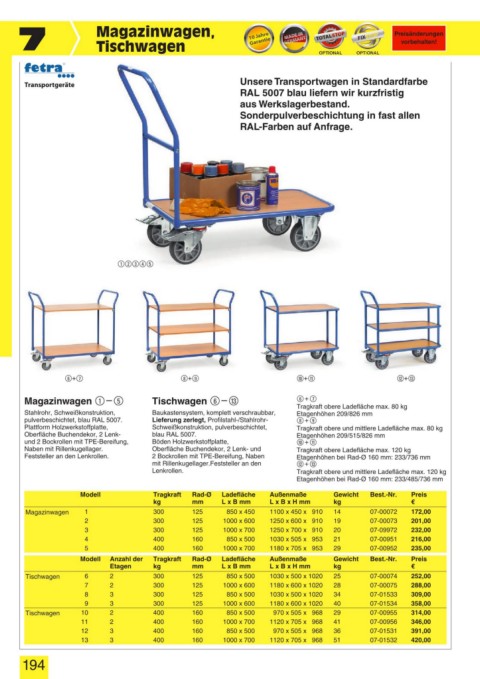 Modell Anzahl der Tragkraft Rad-Ø Ladefläche Außenmaße Gewicht Best.-Nr. Preis