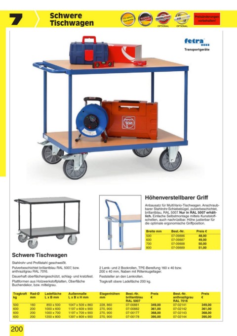 Tragkraft Rad-Ø Ladefläche Außenmaße Etagenhöhen Best.-Nr. Preis Best.-Nr. Preis