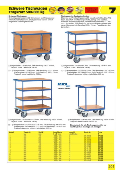 Modell Tragkraft Rad-Ø Ladefläche Anzahl Best.-Nr. Preis