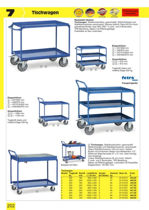 Modell Tragkraft Rad-Ø Ladefläche Anzahl Gewicht Best.-Nr. Preis