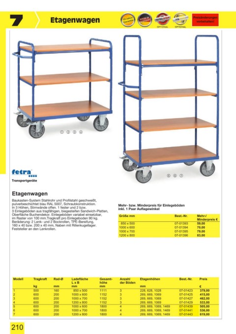 Modell Tragkraft Rad-Ø Ladefläche Gesamt- Anzahl Etagenhöhen Best.-Nr. Preis