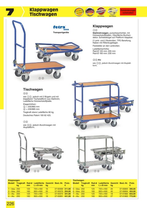 Modell Tragkraft Rad-Ø Ladefläche Gewicht Best.-Nr. Preis Modell Tragkraft Rad-Ø Ladefläche Gewicht Best.-Nr. Preis
