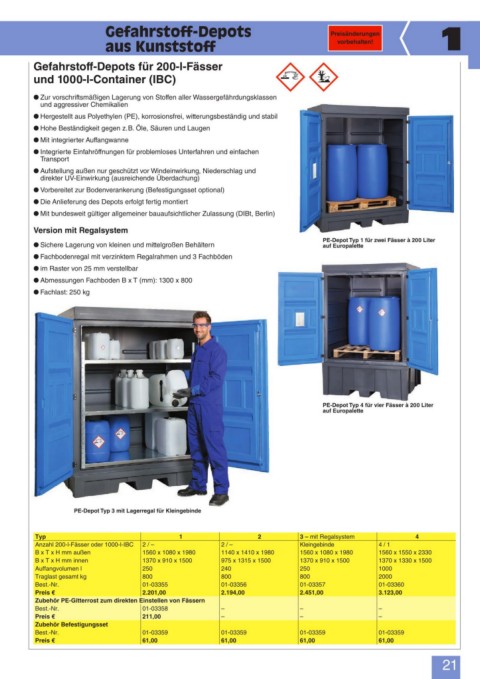 Anzahl 200-l-Fässer oder 1000-l-IBC 2 / – 2 / – Kleingebinde 4 / 1