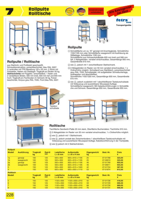 Modell Ausführung Tragkraft Rad-Ø Ladefläche Außenmaße Eigengewicht Best.-Nr. Preis