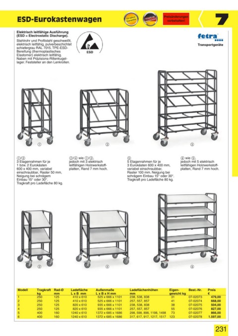 Modell Tragkraft Rad-Ø Ladefläche Außenmaße Ladeflächenhöhen Eigen- Best.-Nr. Preis