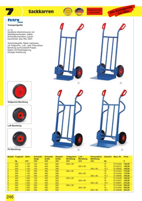 Modell Tragkraft Höhe Schaufel- Schaufel- Gesamt- Vollgummi- Luft- Polyurethan- Gewicht Best.-Nr. Preis