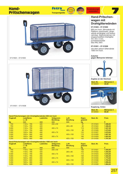 Hand-Pritschenwagen mit 4 Drahtgitterwänden 600 mm hoch