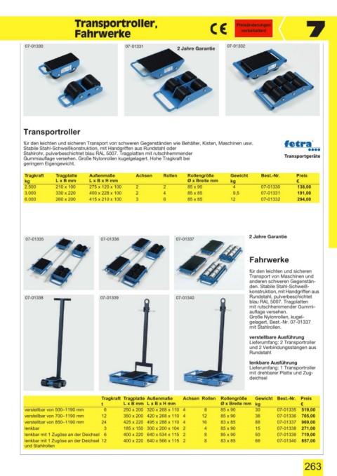 Tragkraft Tragplatte Außenmaße Achsen Rollen Rollengröße Gewicht Best.-Nr. Preis