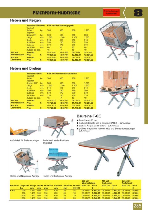 Baureihe Tragkraft Länge Breite Hubhöhe Nutzhub Bauhöhe Hubzeit Best.-Nr. Preis Best.-Nr. Preis Best.-Nr. Preis