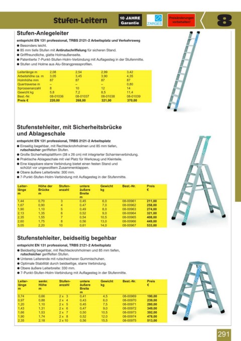 Leiter- Höhe der Stufen- untere Gewicht Best.-Nr. Preis