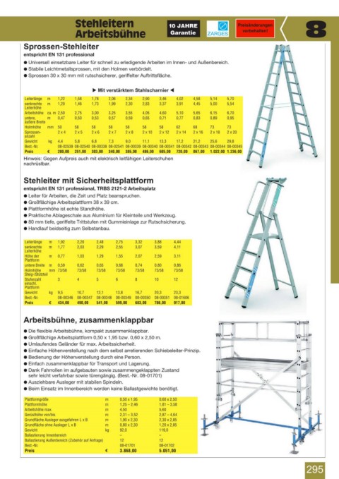 entspricht EN 131 professional, TRBS 2121-2 Arbeitsplatz