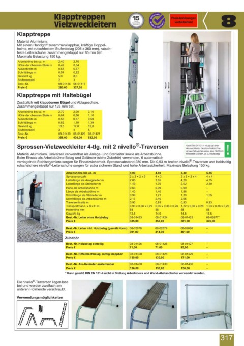 Best.-Nr. Leiter ohne Holzbelag 08-01423 08-01424 08-01425 08-02677*