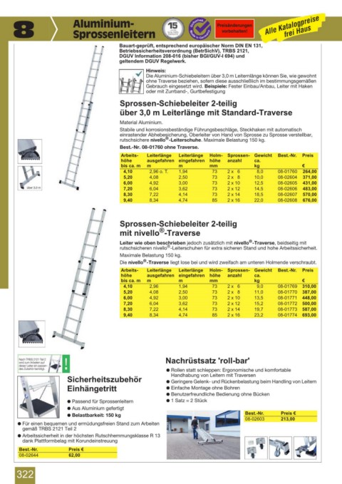 Die Aluminium-Schiebeleitern über 3,0 m Leiternlänge können Sie, wie gewohnt