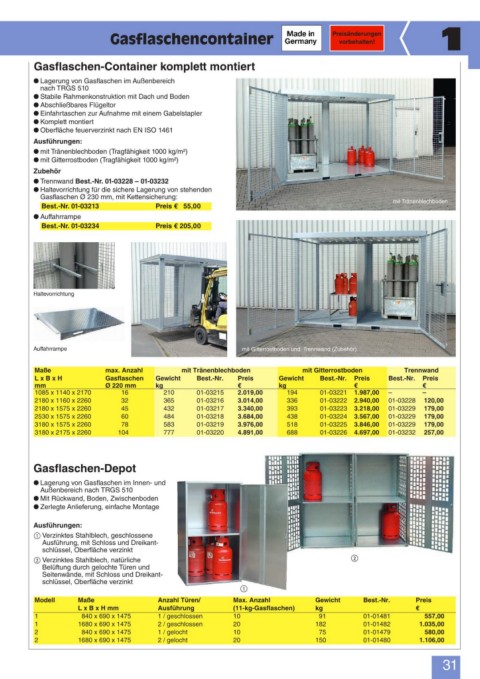 L x B x H Gasflaschen Gewicht Best.-Nr. Preis Gewicht Best.-Nr. Preis Best.-Nr. Preis