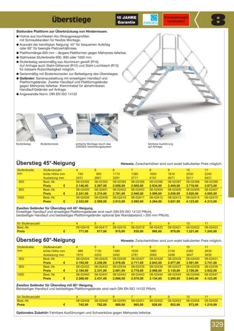 Überstieg 60°-Neigung Hinweis: Zwischenhöhen sind zum exakt kalkulierten Preis möglich.