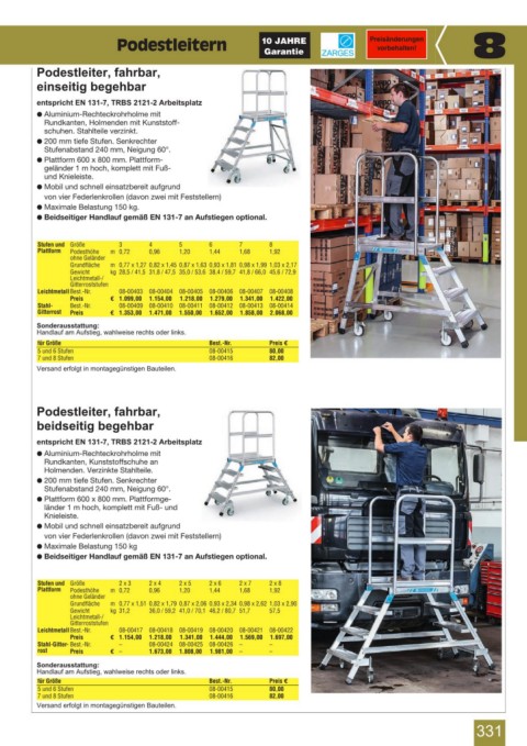 Plattform Podesthöhe m 0,72 0,96 1,20 1,44 1,68 1,92