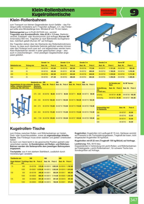 Lackierung: RAL 5015 blau Rollenbahn Seitenführung Best.-Nr. Preis 7 Best.-Nr. Preis 7