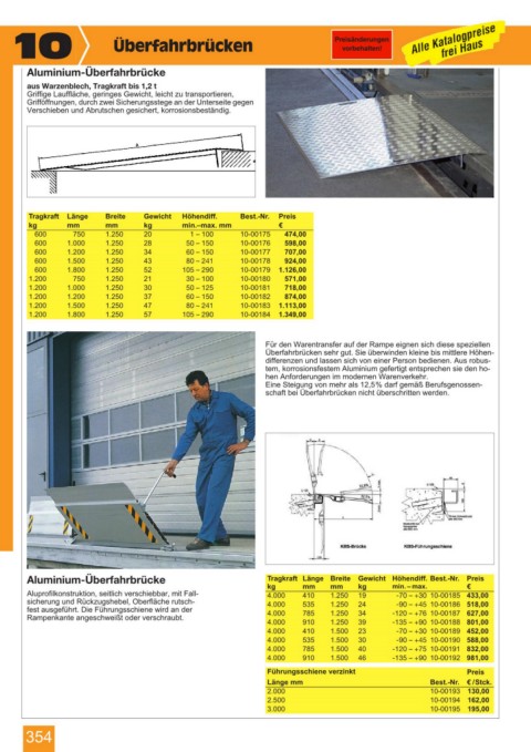Aluminium-Überfahrbrücke Tragkraft Länge Breite Gewicht Höhendiff. Best.-Nr. Preis