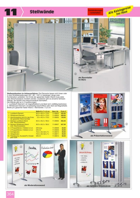 5 fahrbare Whiteboard-Wand 85,5 x 45,0 x 180,0 11-08607 627,00 , - &