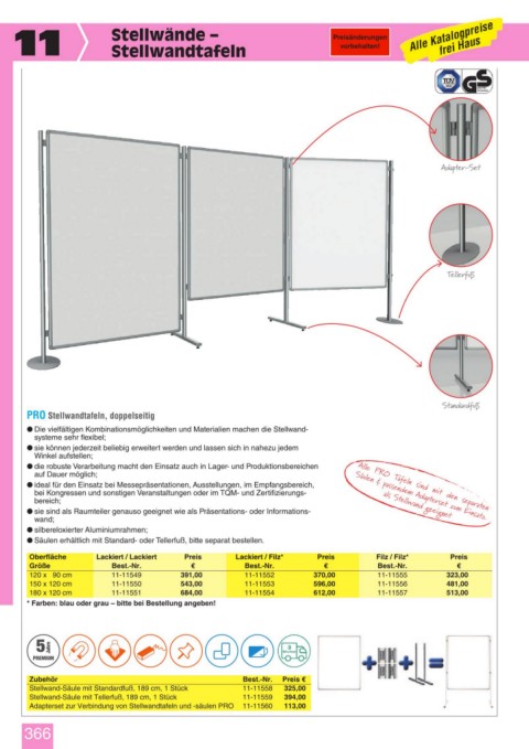 11 Stellwände – Preisänderungen