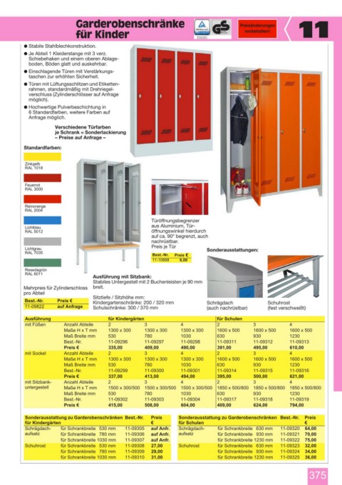 Best.-Nr. Preis € Kindergartenschränke: 200 / 320 mm Schrägdach Schuhrost