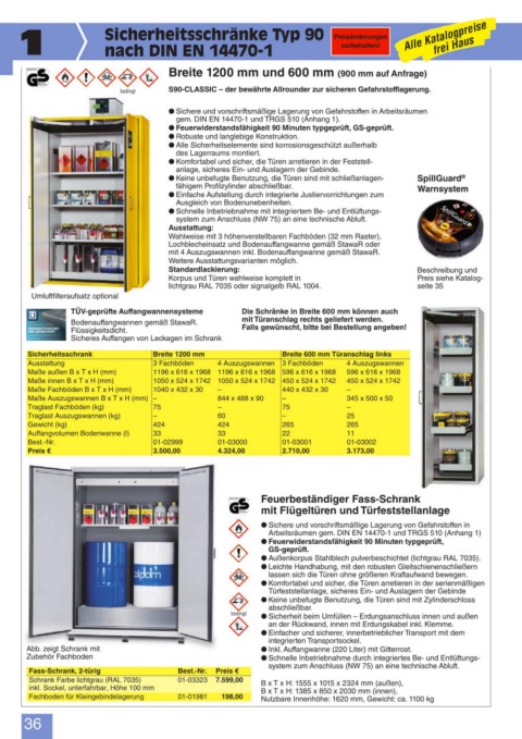 1 Sicherheitsschränke Typ 90 Preisänderungen