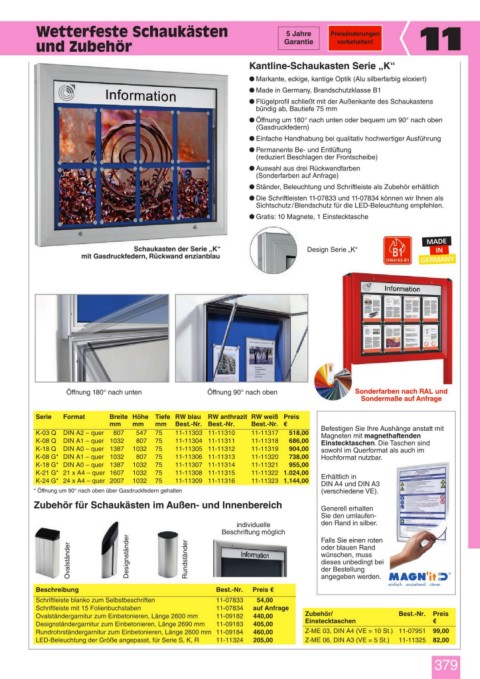 Zubehör für Schaukästen im Außen- und Innenbereich Generell erhalten