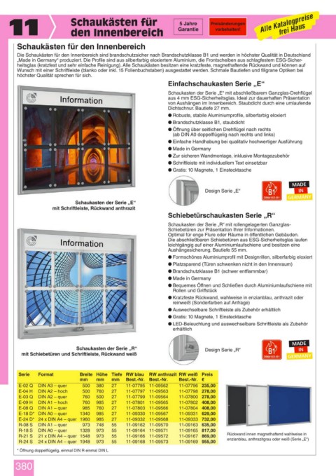heitsglas (kratzfest und sehr einfache Reinigung). Alle Schaukästen besitzen eine kratzfeste, magnethaftende Rückwand und können auf